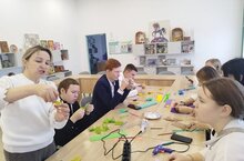 Учашиеся старших классов побывали на мастер-классе "Новогодняя снежинка" в ЦДТ "Килечек". / Өлкән сыйныф укучылары "Килечек" мәдәният сараенда "Яңа ел кар бөртеге"мастер-классында булдылар.