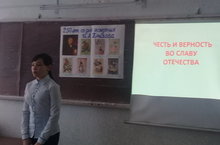 С обучающимися 1-9 классов был проведен конкурс чтецов стихотворений наизусть "Честь и верность во славу Отечества".Цели:1. Расширить знания детей о поэзии, познакомить их с высказываниями великих поэтов о чудо-поэзии.2. Развивать интерес к поэтическому слову, желание творить свои стихи.3. Воспитывать уважение к художникам поэтического слова, их творчеству. -