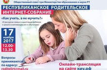 Стартует новый проект – Республиканское родительское интернет-собрание. Это совместная инициатива Министерства образования и науки Республики Татарстан и Общественного совета при Министерстве образования и науки Республики Татарстан.Институт семьи и воспитания, являющийся особой ценностью в России, в наши дни переживает заметный кризис. Один из очевидных выходов из этого кризиса – воспитание культуры быть родителем.Председатель Общественного совета при Министерстве образования и науки Республики Татарстан, член комиссии Общественной палаты Республики Татарстан по образованию и науке Асия Тимирясова, рассказывая об идее родительского интернет-собрания, заметила: «Если задуматься, родитель – это главная роль каждого взрослого человека. Быть мамой и папой – это значит каждый день быть профессиональным экспертом по воспитанию своего ребенка, каждый день думать над тем, что нужно сделать сегодня, чтобы завтра ребенок стал лучше… Зачастую у большинства родителей на это не хватает времени. Так зародилась идея проведения в онлайн-режиме регулярного методического семинара для родителей».Тематика охватывает вопросы адаптации школьников к учебному процессу, регулирования кризисных ситуаций между детьми и родителями, культуры поведения детей в виртуальном пространстве, обоснованного выбора подростком будущей профессии и другие темы, представляющие несомненный интерес для родителей.При организации встреч в онлайн-режиме решили отойти от формата лекции в пользу живого обсуждения актуальных вопросов обучения и воспитания с участием авторитетных экспертов. В процессе трансляции слушатели смогут получить ответы на заранее присланные вопросы и квалифицированные советы специалистов. Вопросы принимаются по адресу электронной почты: roditelirt@mail.ru.Первое заседание родительского интернет-собрания проведут заместитель министра образования и науки Республики Татарстан Лариса Сулима и председатель Общественного совета при Министерстве образования и науки Республики Татарстан, член комиссии Общественной палаты Республики Татарстан по образованию и науке Асия Тимирясова. Тема собрания – «Как учить, а не мучить?». Кандидат биологических наук Ольга Григорьева и кандидат психологических наук Надежда Ванюхина, эксперты, ученые-практики Казанского инновационного университета имени В.Г.Тимирясова, будут вести речь о том, как родители могут повлиять на желание ребенка учиться.Онлайн-трансляция собрания будет вестись на сайте Казанского инновационного университета имени В.Г.Тимирясова по адресу: https://ieml.ru/. Первая встреча экспертов и родителей в рамках Республиканского родительского интернет-собрания состоится 17 ноября 2017 года (в пятницу) с 12:00 до 13:30 часов. -