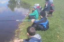 3 день работы пришкольного лагеря "Радуга" пошли ловить рыбу. В конце рыбалки провели конкурс.