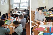 "Мы в творческой мастерской, вырезаем, клеим и наслаждаемся."Ура , каникуллар!"Язгы ассорти"иҗат остаханәсеКласс җитәкчеләре А. Ш. Хөсәенова белән 2,3 класс укучылары."Без иҗади остаханәдә, кисәбез, ябыштырабыз һәм ләззәтләнәбез." -