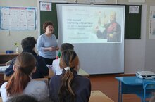 Башлангыч сыйныфлар укытучысы Хөсәенова Ә.Ш. яшь герой - антифашист көненә багышланган «Яшь геройлар-антифашистлар» дигән батырлык дәресе үткәрде.