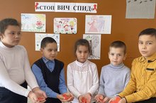 В рамках акции , приуроченный ко Всемирному дню борьбы со СПИДом, обучающиеся начальных классов раскрашивали рисунки, сделали символику . -