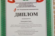 Поздравляем ученика нашей гимназии - Хамадиева Саида, он Победитель Открытой республиканской олимпиады по биологии, экологии, химии "Олимп естествознания" . Учитель Валитова Р. И.