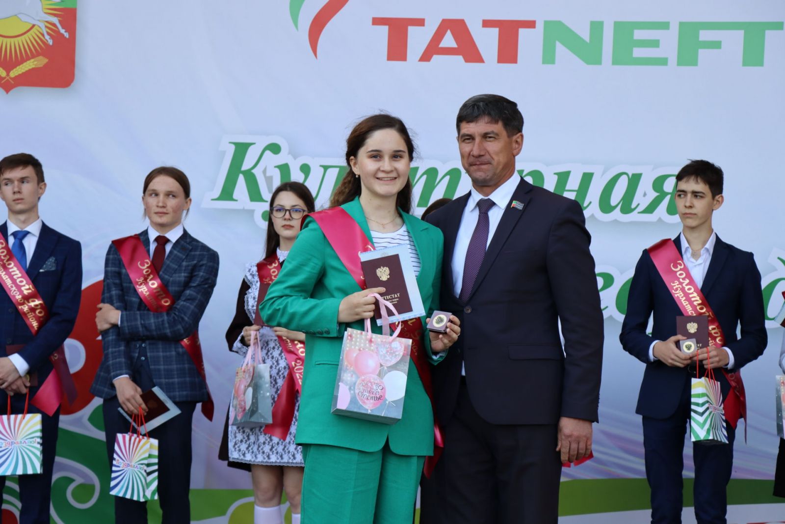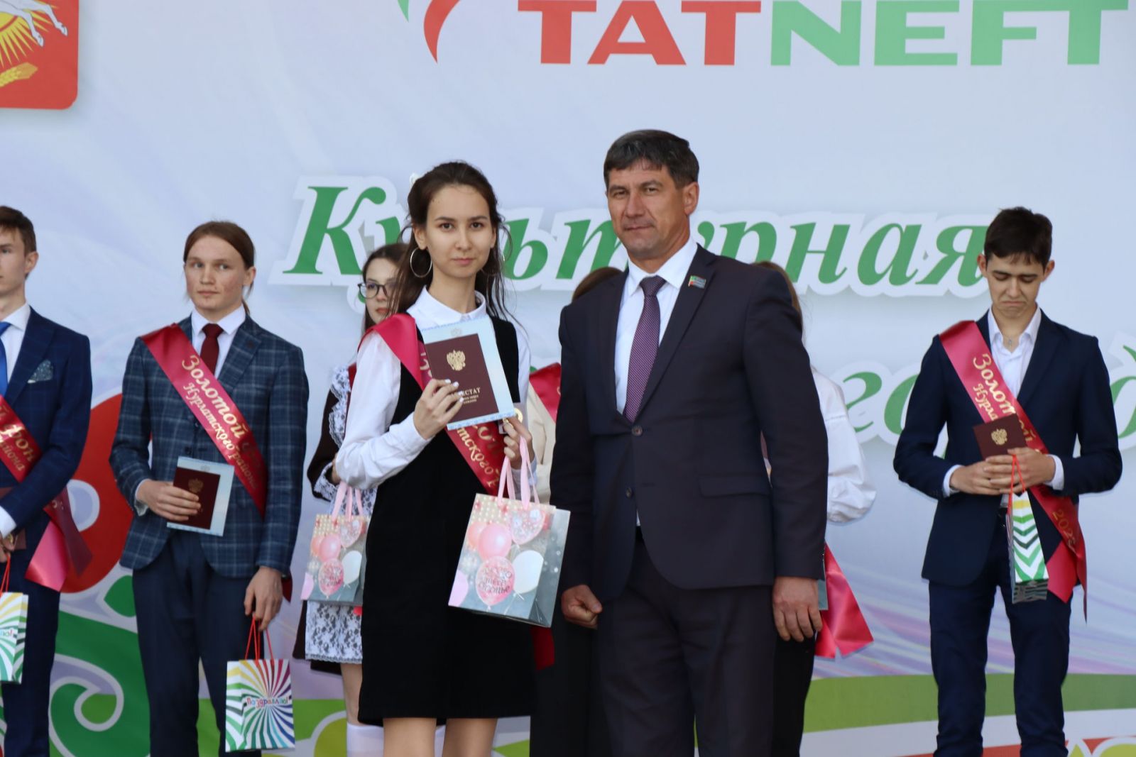 Безнең районны һәм республиканы олимпиада хәрәкәтендә үз казанышлары белән таныткан чыгарылыш сыйныф укучыларын аерым билгеләп үттеләр. «Татнефть» хәйрия фондының «сәләтле балалар» программасы сертификаты һәм 20 мең сум күләмендә акчалата премия белән гимназияне тәмамлаган Полина Миронова-Җамалиева бүләкләнде.