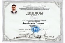 5А сыйныф укучысы Зыятдинова Эльвинаны котлыйбыз, ул Роберт Миңнуллин исемендәге Бөтенроссия фәнни-гамәли конференциясенең 1 дәрәҗә дипломы белән бүләкләнде. Җитәкчесе Мирзаева Л. Х.НПК