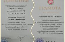 Ура!!! Ученица 11 А класса Миронова-Замалеева Полина стала победителем Республиканской олимпиады « Путь к Олимпу» по английскому языку !!! Учитель: Абрамова Оксана Петровна! Поздравляем!!!!