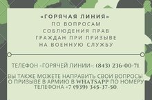 02 апреля 2021 года Уполномоченный по правам человека совместно с Военным комиссариатом Республики Татарстан проводит «горячую линию» по вопросам соблюдения прав граждан при призыве на военную службу.