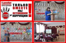 12 декабря учитель обществознания Авдушкина Н.А. провела для обучающихся 7-8 классов мероприятие, приуроченное к Международному дню борьбы с коррупцией «Мы против коррупции». На мероприятие была приглашена консультант аппарата Мировых судей Слепцова А.А. Она на конкретных примерах разобрала с обучающими случаи коррупции, рассказала о методах борьбы с подобными случаями и существующих Законах, предусматривающих наказание за коррупционные преступления.