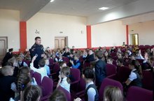 В понедельник, 27 октября, в актовом зале гимназии прошла встреча обучающихся начальной школы с инспектором ДПС Мугайнетдиновым Р.М., во время которой была проведена викторина по правилам дорожного движения.