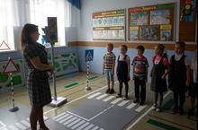 Члены творческого объединения "Светофорик" на линейке для начальных классов выступили с агитбригадой "Безопасные каникулы