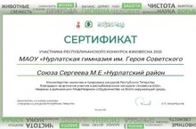 Министерство экологии и природных ресурсов Республики Татарстан благодарит за активное участие МАОУ "Нурлатская гимназия им.М.Е.Сергеева" в Республиканском конкурсе "ЭКОВЕСНА 2025".