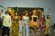 Еще более креативно ребята подошли к творческому номеру по созданию костюма «Образ осени». Например, студентки 167 группа сами сшили из подручного материала и украсили свой наряд, девочки из 352 группы воздушную юбку сшили из кусочков полиэтиленовых пакетов, связали красивый венок из осенних листьев, а в руках у участницы была корзина с осенними плодами. Победителями в этом конкурсе оказались студенты 443 группы, которые сшили платье полностью их осенних листьев.