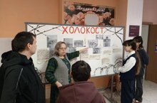 В рамках памятной даты советник по воспитанию Мурзаханова М.П. совместно с педагогом –организатором Хайруллиной А.Р. и активистами Студсовета организовали выставку «Стена памяти». «Стена памяти» - это фотографии, документы, цитаты, истории о жертвах Холокоста.