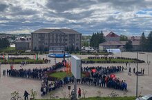Несмотря на ненастную погоду, жители района массово собрались на площади для участия в праздничных мероприятиях. -