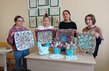Активисты передали бабушкам и дедушкам гостинцы: сладкую выпечку и поделки от обучающихся 136 группы. -