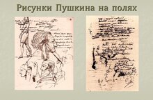 Позднее, уже после смерти поэта, «быстрым карандашом» стали называть его графическое наследие – многочисленные зарисовки, сделанные им на полях рукописей. Лёгкие, стремительные, как правило, они возникали в минуты ожидания музы, когда рука с карандашом сама водила по бумаге. «Он рисовал беззаботно, – писал один из первых исследователей Пушкина-художника А. М. Эфрос. – Он рисовал, как хотел бы писать. Рисунки выходили у него сразу или не выходили совсем. В первом случае он не очень радовался и во втором – не слишком огорчался. Он их любил, порой берёг, всегда забавлялся ими, – но просто и небрежно… Он от них ничего не требовал. Они возникали мимоходом. Они были малыми спутниками его стихов. Они жили в их тени и их соками. Они не тянулись к самостоятельной жизни. Их прелесть – это прелесть пушкинского поэтического „почерка“. Пушкинский рисунок – дитя пауз и раздумий поэтического труда». Тем не менее эти «дети пауз и раздумий» – лирические ли, карикатурные ли – всегда получались очень выразительными и о самом поэте зачастую «говорили» больше, чем слова и рифмы. По мысли того же Эфроса: «Графика его рукописей – это дневник в образах, зрительный комментарий Пушкина к самому себе». -