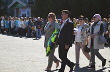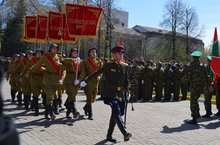 Парад, посвящённый Великой Победе, открывали студенты техникума, которые пронесли штандарты фронтов, принимавших участие в Великой Отечественной войне. -