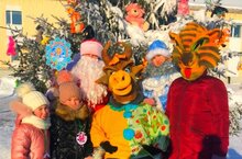 Что тут происходит? Что творится? Да это гости сквера железнодорожников ТИГР, БЫК и ДЕД МОРОЗ с детьми играть пришли. Деткам весело у нас, представленье просто КЛАСС!