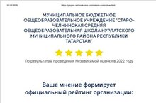 Муниципальное бюджетное общеобразовательное учреждение "Старо-Челнинская средняя общеобразовательная школа Нурлатского муниципального района Республики Татарстан"/ "Татарстан Республикасы Нурлат муниципаль районы Иске Чаллы урта гомуми белем мәктәбе" муниципаль бюджет гомуми белем учреждениесе