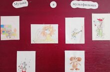 На предметной неделе спортивно-технического и эстетического цикла учитель музыки и изо с 6 классом организовали выставку "Музыка в мультфильмах"