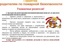 Памятка родителям по пожарной безопасности 31.05.2022