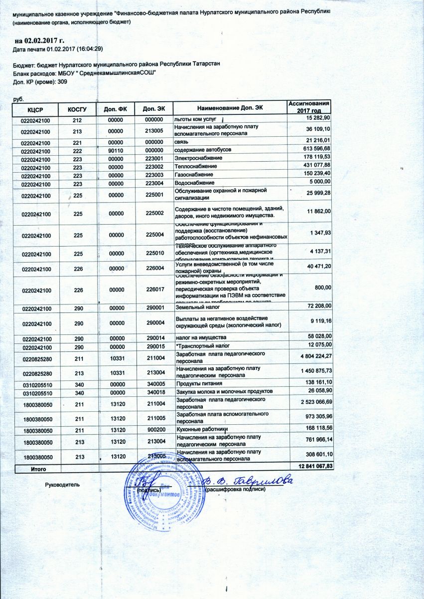 Отчет о финансовых результатах деятельности учреждения на 01.01.2017