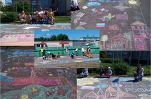 Сегодня провели мероприятия приуроченные ко Дню России. Рисовали рисунки на асфальте "Моя Россия"