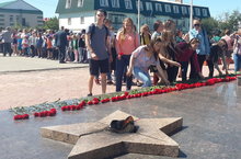 22 июня, в День памяти и скорби, дети из пришкольного лагеря "Солнышко" приняли участие в митинге, посвящённом этой дате.