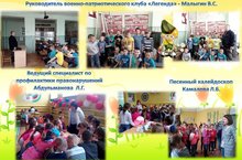 Руководитель военно-патриотического клуба "Легенда" В.С. Малыгин рассказал детям как ведутся поиски пропавших во время войны солдатов. О правонарушениях поговорили с ведущим специалистом по профилактики правонарушений Абдульмановой Л.Г.. Песенный калейдоскоп провела для нас Камалова Л. Б.