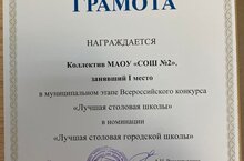 Поздравляем коллектив школы занявший 1 место в муниципальном этапе Всероссийского конкурса “Лучшая столовая школы” в номинации “Лучшая столовая городской школы”