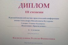 Поздравляем победителей II республиканской научной-практической конференции имени Александра Михайловича Бутлерова, секция "Учёные будущего" - подсекция "Краеведение".