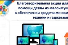В рамках организации дистанционной формы обучения Министерством образования и науки Республики Татарстан инициирована благотворительная акция для оказания помощи детям из малоимущих семей в обеспечении средствами компьютерной техники и гаджетами (#отдайзапаснойгаджетвсвоюшколу). Любой житель Республики Татарстан может оказать посильную помощь детям из малоимущих семей и принести в школу запасные (неиспользуемые) средства компьютерной техники и мобильные устройства для создания условий дистанционного обучения.