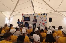 Открытие смены началось с поднятия флагов Selet и РДШ.