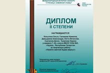 Учащиеся психолого-педагогиче6ского класса 7 "Б", удостоины диплома 2 степени за международный конкурс "Страница семейной славы".
