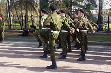 Ученики школы принимают участие в репетиции парада Победы.