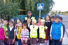 Учащиеся 4Б класса совместно с сотрудником ГИБДД провели акцию "Шагающий автобус". Ребята вспомнили правила дорожного движения и безопасный путь домой.
