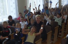 Сегодня состоялась встреча начальных классов с директором "Фонда безопасности дорожного движения" Гульфией Харисовной Гималтдиновой. Обсуждали как правильно ходить по дороге, как правильно переходить по пешеходному переходу и т.д. Вручены подарки: светоотражающие браслеты и памятки пешехода.