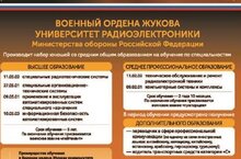 Набор юношей со средним общим образованием в Военном ордене Жукова университете радиоэлектроники