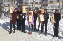 "Каждому скворцу - по дворцу!" Под таким девизом активисты школы организовали акцию в рамках "Весенней недели добра" и подарили школе скворечники, которые теперь ждут своих жителей. // "Һәр сыер-сарай буенча!"Шундый девиз астында мәктәп активистлары" Язгы игелек атнасы " кысаларында акция оештырдылар һәм мәктәпкә сыерчык оялары бүләк иттеләр, алар хәзер үз халкын көтә.