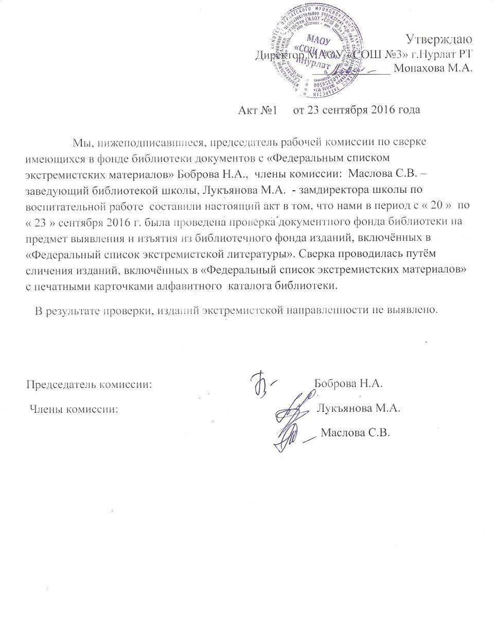 Акт по сверке имеющихся в фонде библиотеки документов с "Федеральным списком экстремистских материалов.jpg