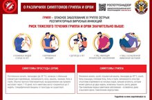 Территориальный отдел Управления Роспотребнадзора по Республике Татарстан (Татарстан) в Нурлатском, Аксубаевском, Алькеевском, Черемшанском районах предлагает ознакомиться с памяткой "О различиях симптомов гриппа и ОРВИ"