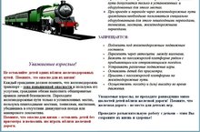 Посадку и высадку из вагонов осуществляете только со стороны перрона или посадочной платформы,обязательно дождитесь полной остановки поезда.Малолетних детей держите за руку или на руках.