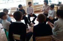 В рамках реализации совместного плана преемственности 13 октября учителем родного (татарского) языка и литературы Тухватуллиной К.Р. было проведено занятие-игра по татарскому языку на тему «Салават куперендә кунакта». Дети научились различать цвета и отвечать полным предложением на татарском языке. Урок прошел увлекательно и полезно с использованием группового подхо