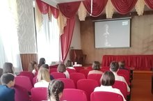 В рамках Международного проекта «Великое кино Великой страны» учащиеся 9Б и 4Б классов, на просмотре фильма «Судьба человека»