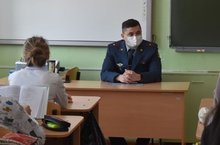 В гостях у учащихся 9-11 классах СОШ №8 Хамидуллин Р. Ф., начальник филиала по Нурлатскому району ФКУ УИИ УФСИН РФ по РТ с профориентационной беседой