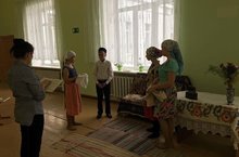 Добровольцы поздравили с прошедшим днем пожилых и вручили небольшой подарок.