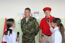 Юные журналисты МБОУ СОШ №8 за работой. Ждите новостей в новом выпуске школьной газеты "Школьное время". Гостем школы сегодня стал Тихонов А.Б., начальник штаба местного отделения Всероссийского детско- юношеского военно-патриотического движения "Юнармия".