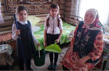 В рамках месячника патриотического воспитания учащиеся 1 класса нурлатсош8 посетили Тазиеву Н.М., и помогли ей убираться в доме.
