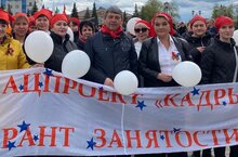 Коллектив МБОУ "СОШ 8 " принял участие в первомайской демонстрации!!! МИР! ТРУД! МАЙ!